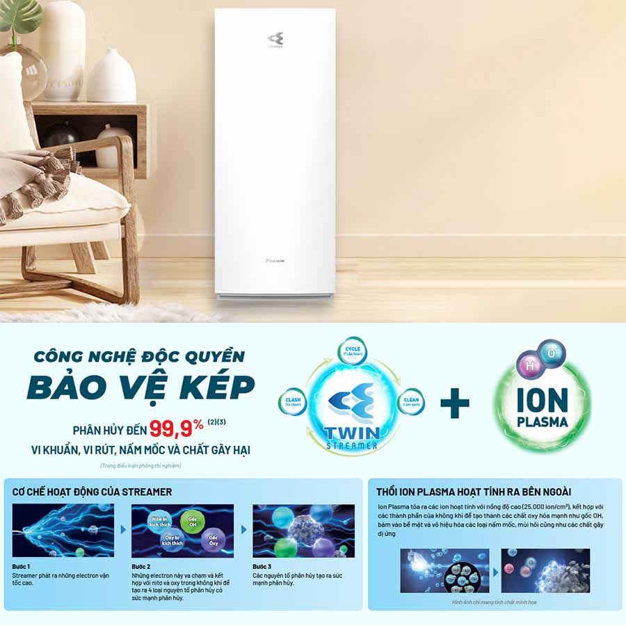 Như vậy máy lọc không khí Daikin MCK70ZVM7-W 82W với 4 lớp màng lọc, công suất hoạt động lớn, sử dụng công nghệ độc quyền Twin Streamer, Ion plasma lọc sạch không khí hiệu quả trong phạm vi 48m2, trang bị nhiều chức năng tiện lợi giúp gia đình bạn có bầu không khí trong lành và sạch sẽ hơn, là một lựa chọn đáng cân nhắc cho gia đình.