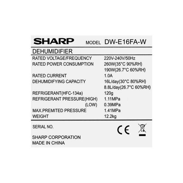 - Tên máy: máy lọc không khí và hút ẩm Sharp DW-E16FA-W