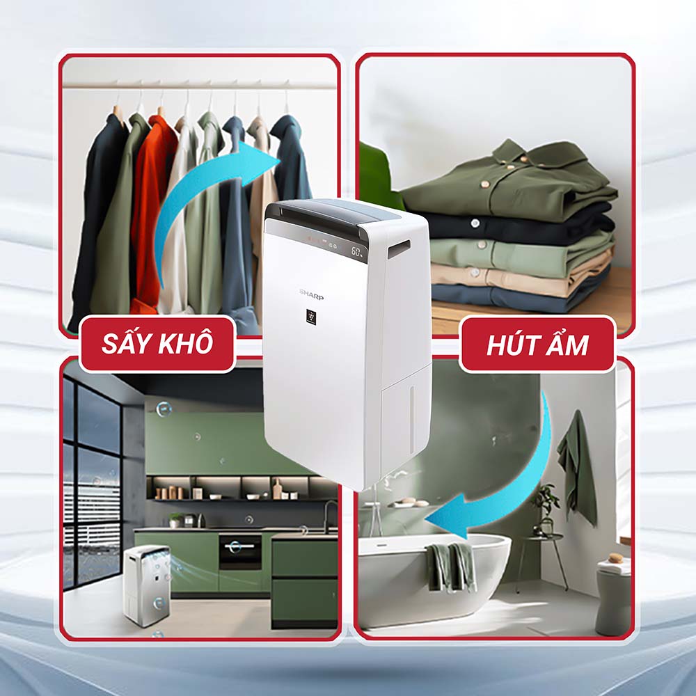 Tính năng hong khô quần áo kết hợp luồng gió mạnh và Plasmacluster Ion hỗ trợ làm khô đồ nhanh hơn, đồng thời hạn chế mùi hôi khó chịu thường gặp khi phơi trong phòng hoặc trong điều kiện trời nồm. Đây là giải pháp rất hữu ích cho gia đình có trẻ nhỏ, cần phơi đồ thường xuyên hoặc sống tại khu vực có khí hậu ẩm quanh năm.