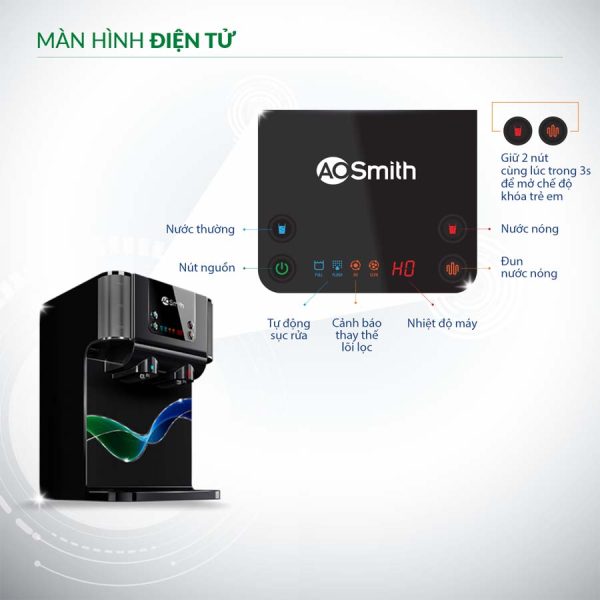 Không chỉ tiện lợi, máy lọc nước A.O.Smith ProPlanet P7 còn đặt sự an toàn lên hàng đầu với chức năng khóa trẻ em thông minh. Tính năng này giúp ngăn chặn hoàn toàn nguy cơ trẻ nhỏ vô tình chạm vào nút lấy nước nóng, giảm thiểu rủi ro bỏng hay tai nạn không mong muốn. Đây là một trong những yếu tố khiến sản phẩm được đánh giá cao và trở thành lựa chọn ưu tiên cho những gia đình có trẻ em.
