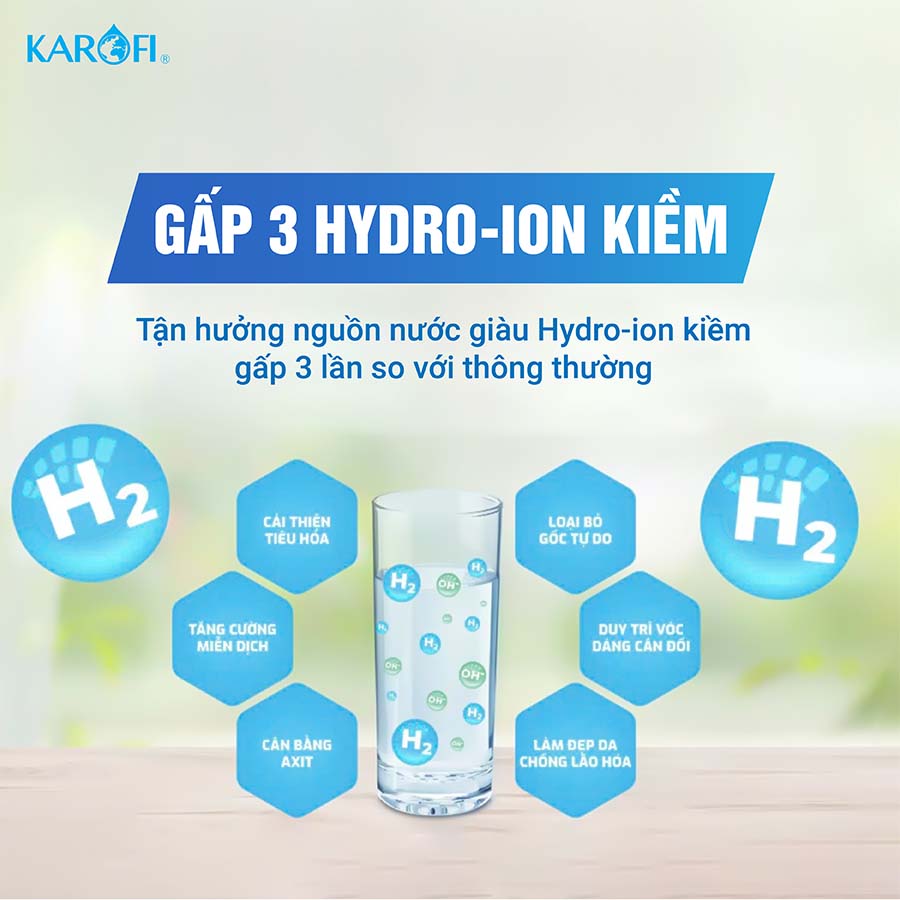 Với Karofi KAE-S88 ProMax, bạn sẽ được trải nghiệm nguồn nước Hydro-ion kiềm vượt trội với hàm lượng cao gấp 3 lần so với máy lọc nước thông thường. Điều này đồng nghĩa với việc, chỉ một ly nước uống hằng ngày thôi, bạn đã bổ sung cho cơ thể nhiều hơn gấp bội những dưỡng chất quý giá.