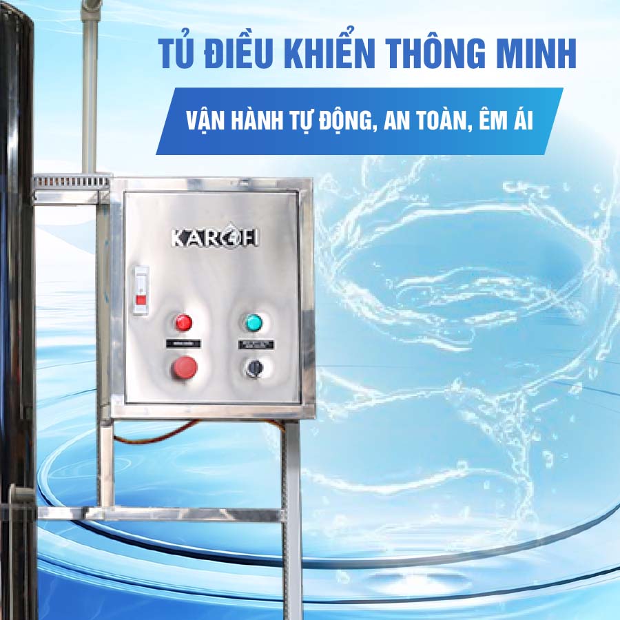 Nhờ vào sự hỗ trợ của tủ điều khiển này, người dùng hoàn toàn yên tâm sử dụng máy mà không cần thao tác thủ công phức tạp, vừa nâng cao hiệu suất hoạt động vừa giảm thiểu rủi ro kỹ thuật trong quá trình lọc nước.