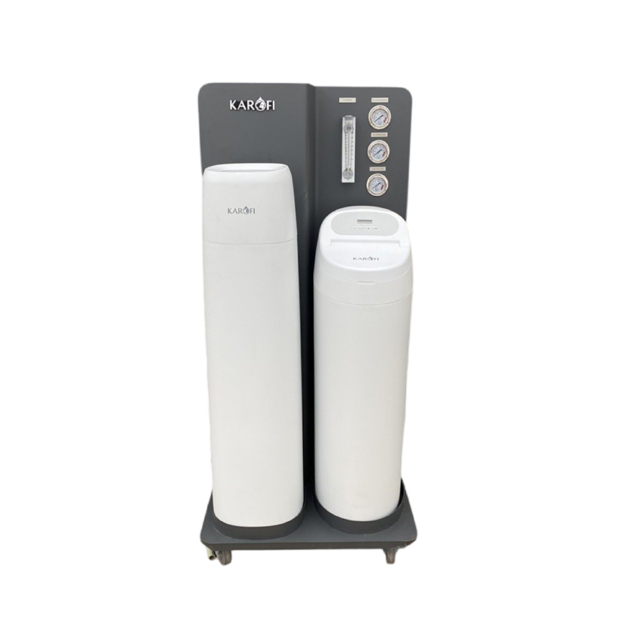 Karofi WHF-E666 Plus được thiết kế với 2 cột lọc chính, đảm nhiệm vai trò xử lý nước tổng đầu nguồn một cách toàn diện.