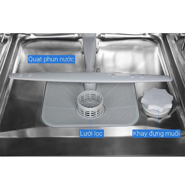 Sản phẩm hoạt động với công suất 2150W, cung cấp lực phun mạnh mẽ và ổn định để đánh bay mọi vết bẩn cứng đầu mà không cần ngâm rửa trước. Dù vận hành với hiệu suất cao, mỗi chu trình rửa chỉ tiêu thụ khoảng 11 lít nước con số khá lý tưởng cho một thiết bị xử lý khối lượng chén bát lớn, từ đó giúp gia đình tiết kiệm chi phí sinh hoạt hàng tháng một cách hiệu quả.