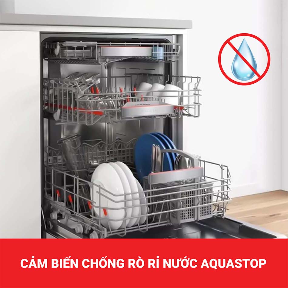 Máy rửa chén Bosch SMV8YCX03E được trang bị các tính năng an toàn như: AquaStop tự ngắt nguồn khi phát hiện rò rỉ nước, Hệ thống chống sét lan truyền hạn chế giật điện khi chạm vào lồng máy… Theo đó, người dùng có thể yên tâm trong quá trình sử dụng máy.