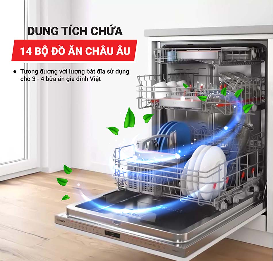 Dung tích chứa lớn, công suất rửa 14 bộ phù hợp gia đình 4 – 6 người