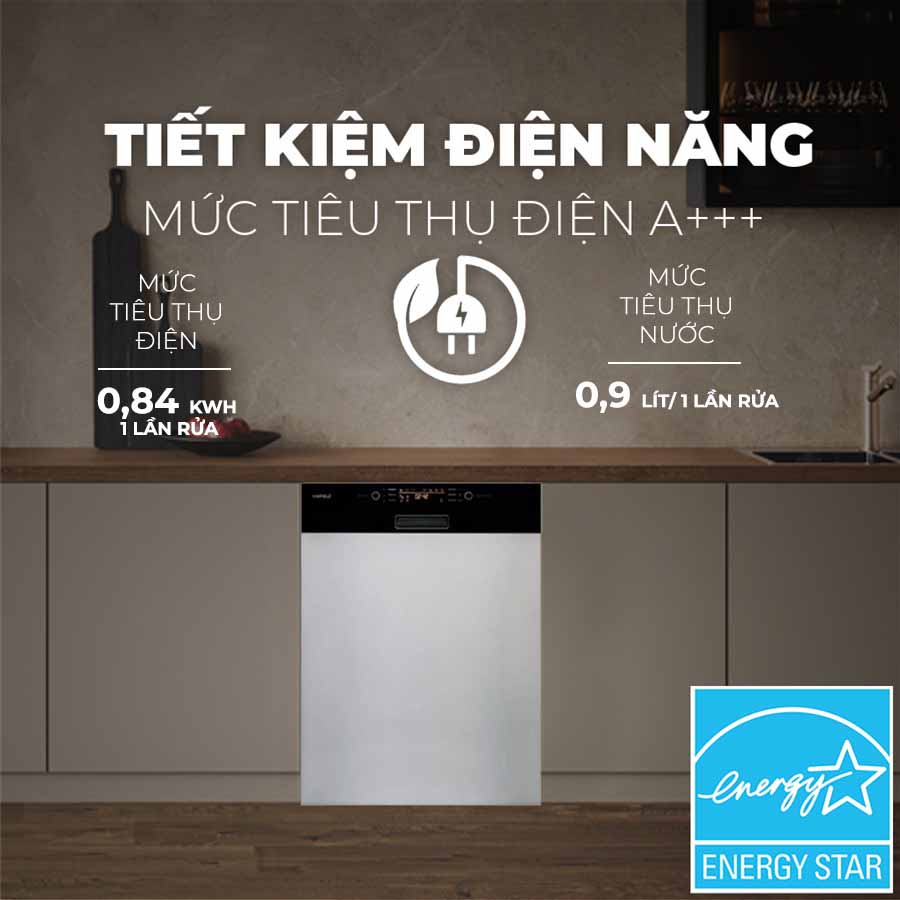 • Chế độ bán tải Half load: Chế độ này được sử dụng khi bạn chỉ cần rửa một lượng chén bát ít. Half load giúp đảm bảo quá trình rửa sạch sẽ, đồng thời tránh lãng phí điện nước, mang lại hiệu quả tối ưu cho gia đình của bạn.