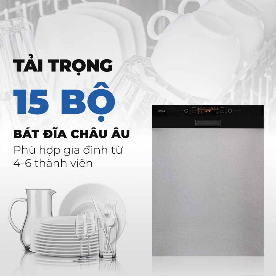 Máy rửa chén Hafele bán âm là sự lựa chọn hoàn hảo cho những ai muốn tiết kiệm không gian và tăng thêm vẻ đẹp hiện đại cho căn bếp. Chất liệu thép không gỉ cao cấp, chịu lực tốt, giúp máy bền bỉ và sang trọng.