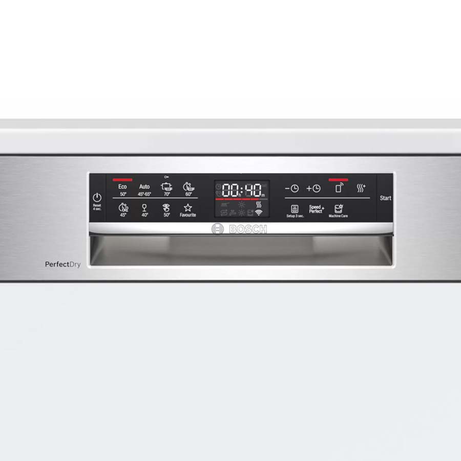 Có kích thước nhỏ gọn và thiết kế âm bán phần, chiếc máy này có thể lắp đặt ở bất cứ đâu trong căn bếp nhà bạn, có thể dưới bồn rửa, cạnh tủ đựng đồ hoặc tận dụng những góc chết không dùng đến. Thế nên dù căn bếp nhà bạn có chật hẹp thì cũng không lo máy chiếm quá nhiều diện tích nhé. Ngoài ra, vỏ ngoài máy rửa bát Bosch SMI6ZCS49E còn được làm bằng chất liệu thép không gỉ cao cấp, không bám vân tay, bền bỉ, trơn bóng, dễ dàng lau chùi vệ sinh.