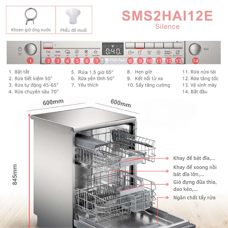 Đánh giá chi tiết máy rửa bát độc lập Bosch SMS2HAI12E 13 Bộ