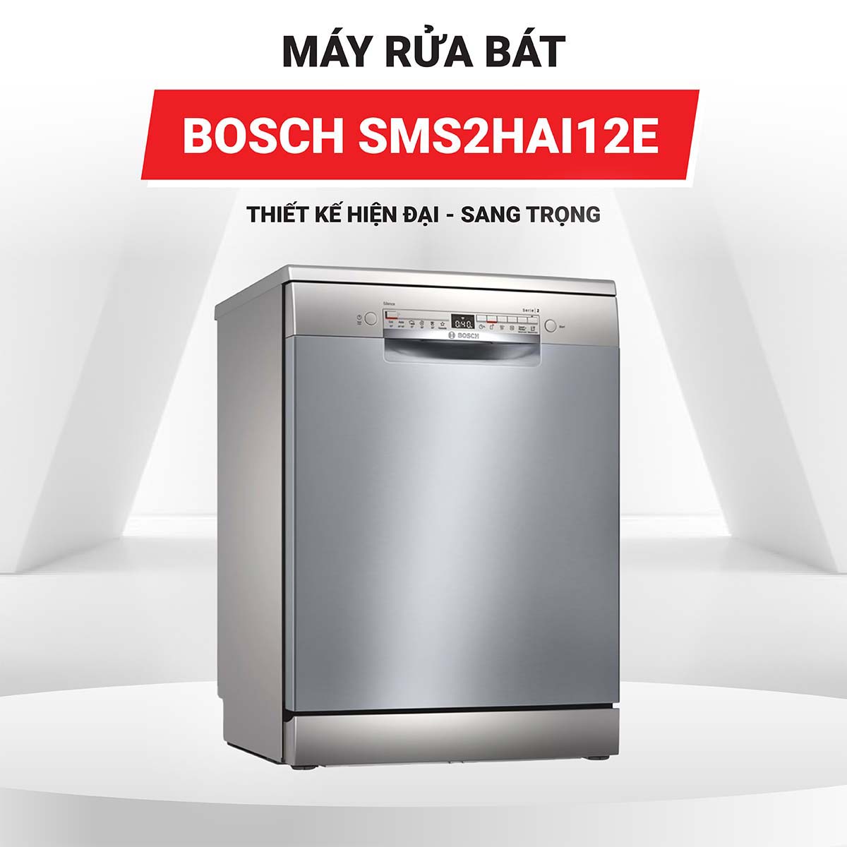 Máy rửa chén độc lập Bosch SMS2HAI12E thiết kế gọn đẹp, sức chứa lớn với chén bát cho 3 – 4 bữa ăn Việt, 6 chương trình rửa tùy chọn, rửa sạch và đảm bảo an toàn với công nghệ rửa nước nóng, tính năng Aquastop, hẹn giờ đến 24 tiếng, điều khiển bằng Home connect qua điện thoại và nhiều tính năng tiện dụng khác mà bạn chắc chắn nên chọn mua sản phẩm này để từ từ khám phá những lợi ích thiết thực mà máy đem lại.