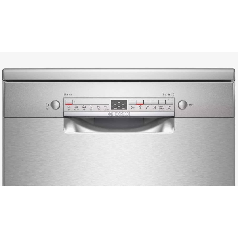 Máy rửa chén độc lập Bosch SMS2HAI12E sở hữu kiểu dáng đơn giản, hình khối chữ nhật cứng cáp nhờ dùng chất liệu vỏ thép sơn tĩnh điện và cửa lò bằng thép không gỉ bóng sáng, chống rỉ sét, làm sạch đơn giản. Kết cấu gọn gàng, kích thước nhỏ của máy cho phép bạn di chuyển và bố trí ở nhiều nơi thuận tiện, thiết kế tinh tế tạo điểm nhấn cho không gian bếp thêm đẹp mắt, hiện đại.