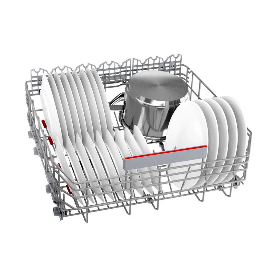 Máy rửa bát Bosch SMS6ZCI00P được trang bị giàn VarioFlex Pro với chất liệu cao cấp, bền bỉ và an toàn cho sức khỏe người dùng. Giàn rửa này nổi bật với khả năng điều chỉnh linh hoạt, cho phép người dùng di chuyển các giá cài lên xuống, trái phải, cao thấp hoặc gập lại để tối ưu không gian chứa. Nhờ vào thiết kế thông minh, người dùng có thể dễ dàng điều chỉnh kích thước của giàn rửa để phù hợp với từng loại dụng cụ và tạo thêm không gian cho các vật dụng có kích thước lớn hơn, giúp đảm bảo mọi món đồ đều được rửa sạch kỹ.