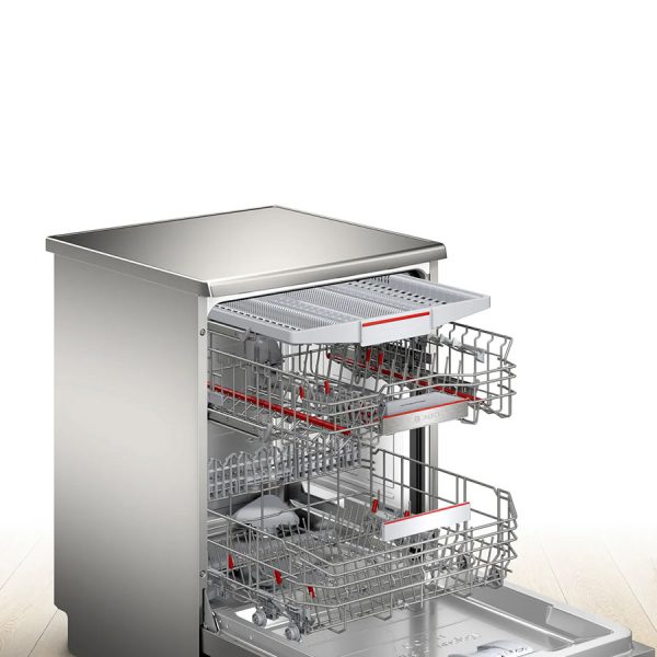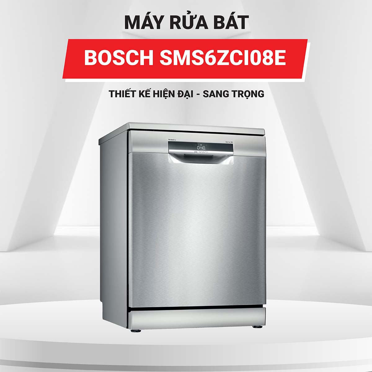 Máy rửa chén Bosch SMS6ZCI08E thuộc dòng máy rửa chén độc lập, cho phép bạn lắp đặt linh hoạt ở mọi vị trí trong không gian bếp. Máy rửa chén Bosch có chất liệu vỏ máy và cửa đều được làm bằng thép sơn tĩnh điện cứng cáp, chịu va đập và chống trầy xước tốt. Ngoài ra, sản phẩm còn được thiết kế màu bạc inox có độ bền màu tốt trong suốt quá trình sử dụng.