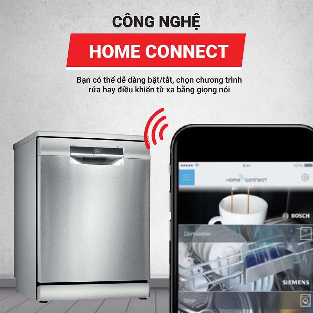 - Kết nối Home connect: Cho phép bạn điều khiển từ xa nhanh chóng các chức năng của máy rửa chén Bosch trên điện thoại cũng như các thiết bị di động tiện lợi.