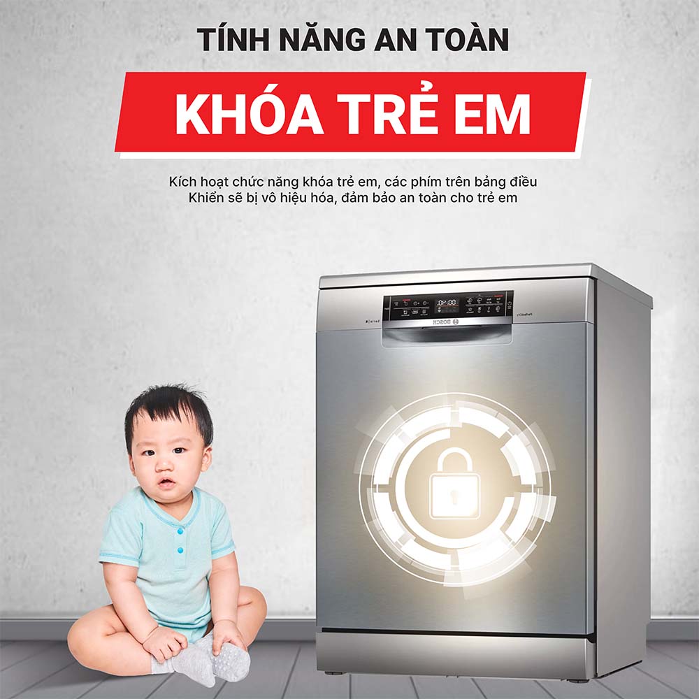 Máy rửa bát Bosch tích hợp khóa trẻ em