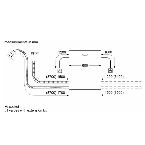 Máy rửa bát độc lập Bosch SMS8ZDW48M  serie 8 có kích thước 845 x 600 x 600 mm (CxRxS) và tổng trọng lượng máy 54,3kg.