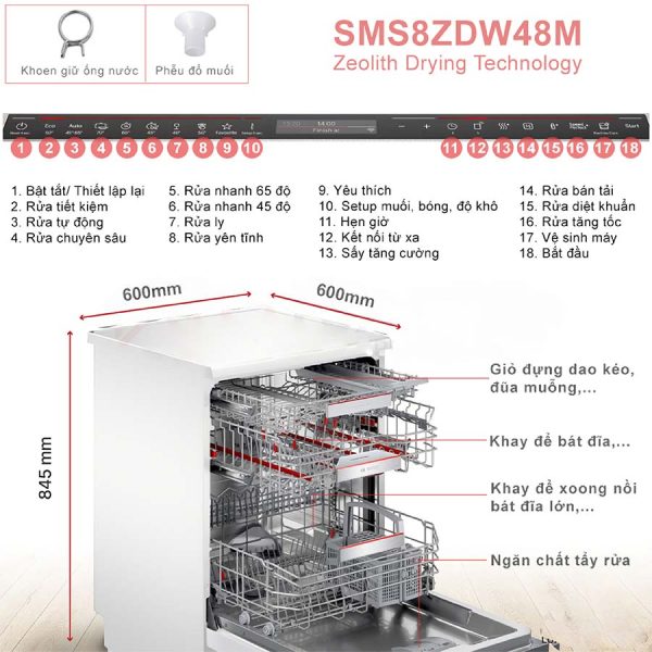 Máy rửa chén bát là một vật dụng không thể thiếu trong căn bếp hiện đại, giúp tiết kiệm thời gian và công sức làm sạch chén đĩa sau khi ăn, đồng thời đảm bảo sức khỏe cho cả gia đình. Cùng Huy Trương tìm hiểu chi tiết về máy rửa bát độc lập Bosch SMS8ZDW48M, một model sản phẩm máy rửa chén bát đang hot trên thị trường hiện nay: