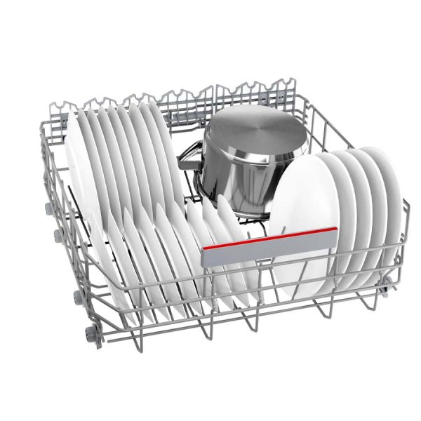 Hệ thống giàn rửa rộng rãi, kết hợp với khay chứa trên có thể điều chỉnh độ cao khoảng 5 cm giúp máy rửa chén chứa được nhiều loại bát đĩa khác nhau, từ bát ăn cơm đến ly thủy tinh cao. Máy hoàn toàn có thể đáp ứng nhu cầu làm sạch cho 3-4 bữa ăn của gia đình Việt.