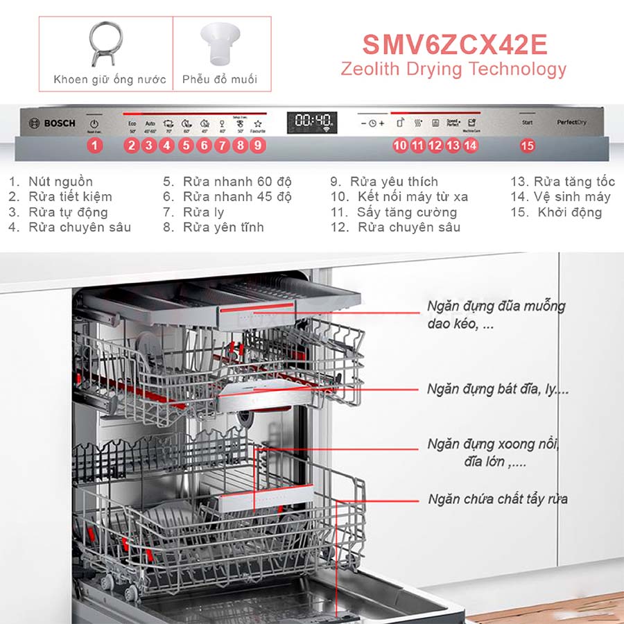 Đánh giá chi tiết về máy rửa bát Bosch SMV6ZCX42E Sấy Zeolith