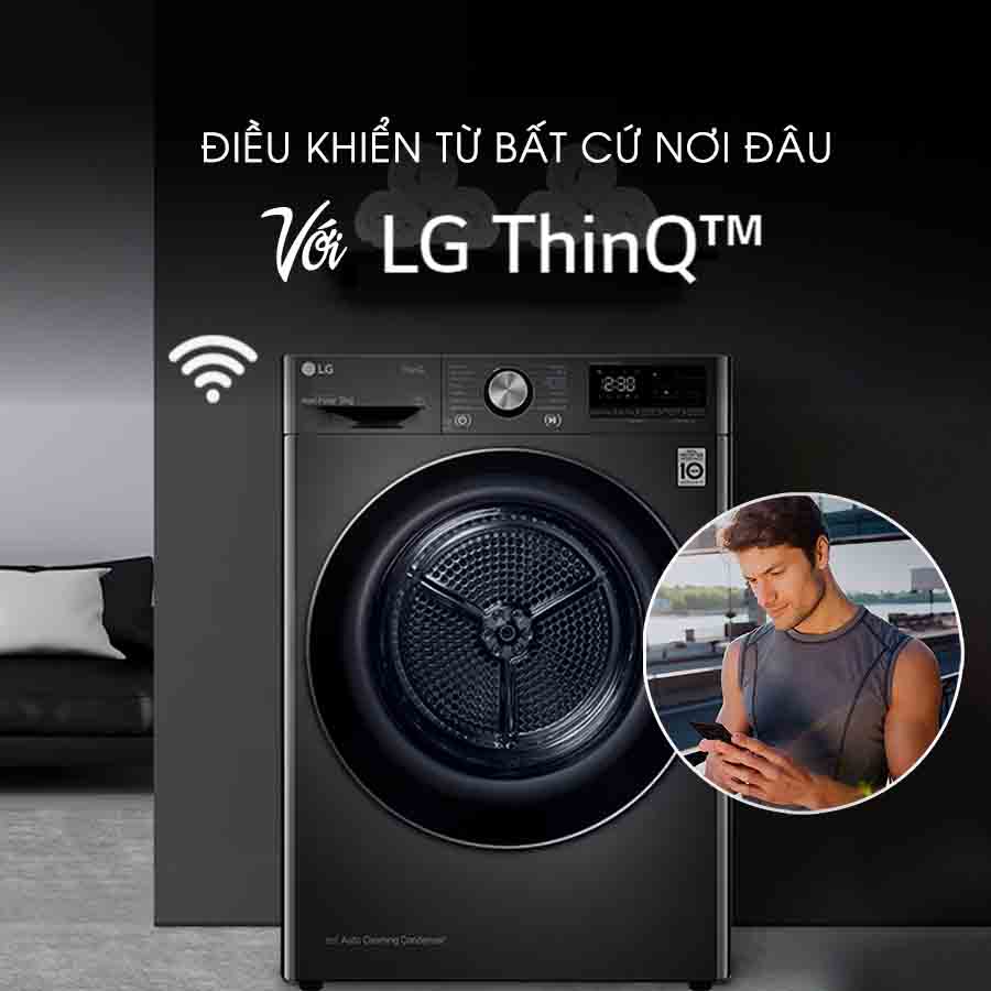 LG ThinQ là tính năng cho phép người dùng điều khiển máy sấy từ xa thông qua ứng dụng trên điện thoại thông minh. Điều này giúp người dùng có thể quản lý và điều khiển máy sấy một cách thuận tiện, dễ dàng từ xa, tiết kiệm thời gian và năng lượng. Bên cạnh việc điều khiển từ xa, tính năng LG ThinQ còn cung cấp cho người dùng thông tin về trạng thái hoạt động của máy sấy, gợi ý lịch sử sử dụng và cung cấp thông tin về các chương trình sấy khác nhau để giúp người dùng lựa chọn chương trình phù hợp với nhu cầu sử dụng của mình.