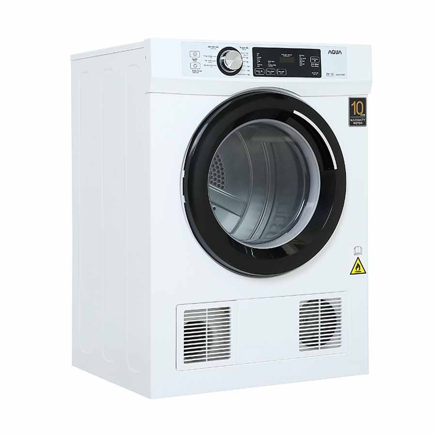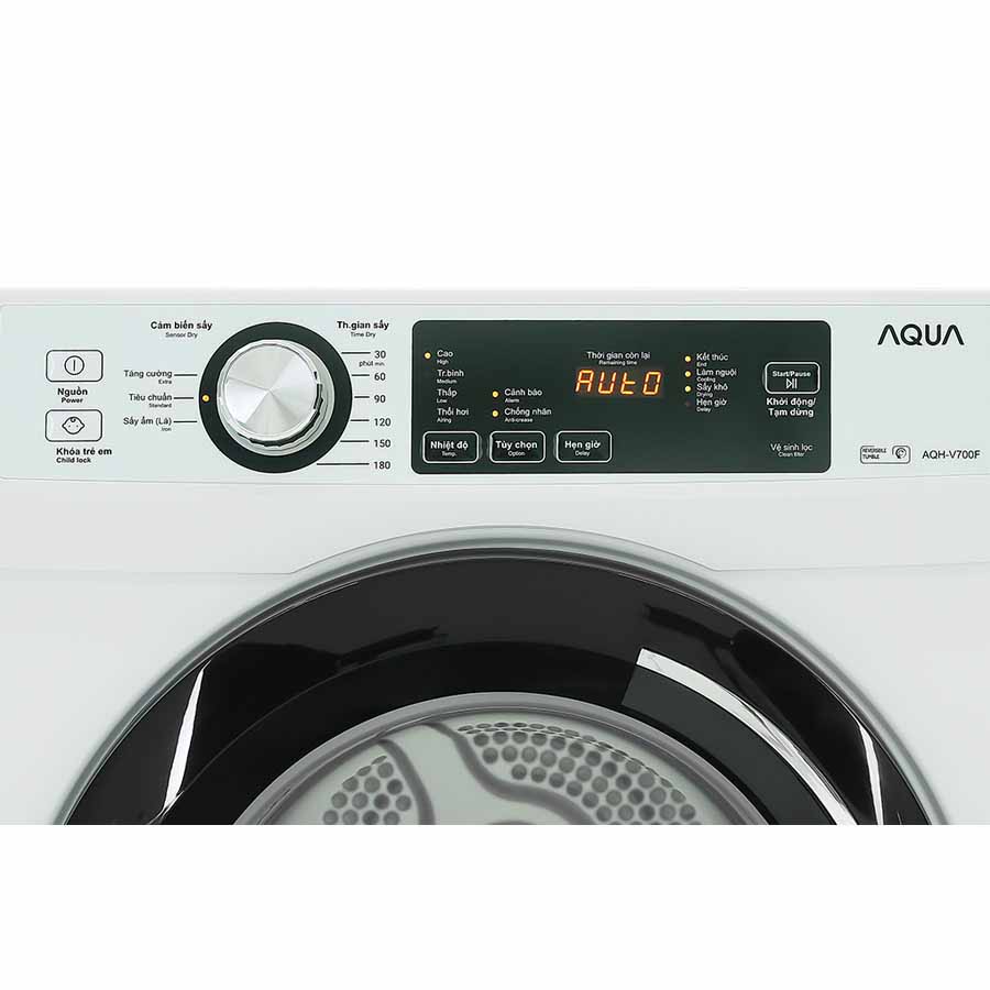 Máy sấy quần áo Aqua 7 kg AQH-V700F.W sở hữu mang thiết kế màu trắng thanh lịch và tinh tế. Bên cạnh đó, máy có kích thước nhỏ gọn, trọng lượng vừa phải phù hợp với nhiều không gian phòng. Đặc biệt, Aqua tích hợp cho máy sấy thiết kế vô cùng thông minh, cho phép người dùng lắp đặt máy giặt và máy sấy theo 3 cách: đặt cạnh máy giặt, chồng ngược lên máy giặt, và úp ngược treo tường. Giờ đây, dù không gian phòng giặt nhỏ, bạn vẫn có thể đặt máy sấy một cách dễ dàng hơn rất nhiều.