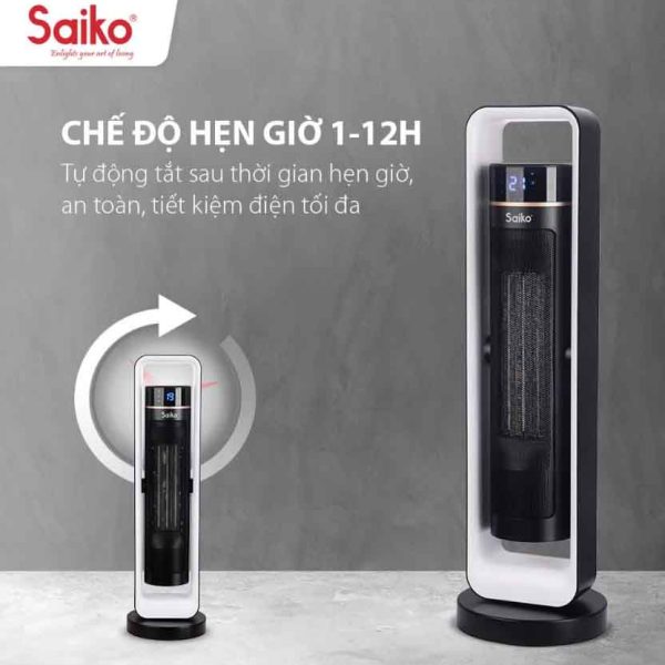 Quạt sưởi gốm Saiko CH-2200R có điều khiển từ xa, và chế độ hẹn giờ bật – tắt máy theo ý muốn lên tới 12 tiếng cho phép người sử dụng thiết lập chế độ theo ý muốn vào ban đêm mà không phải lo lắng gì cả.
