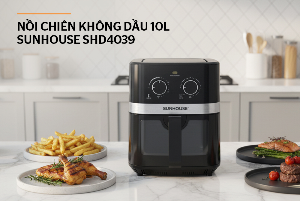 Với dung tích lớn 10L, Nồi chiên không dầu 10L Sunhouse SHD4039 phù hợp cho gia đình đông người hoặc các bữa tiệc, mang đến trải nghiệm nấu ăn nhanh chóng, tiện lợi và lành mạnh. Kết hợp cùng công suất 1800W mạnh mẽ, giúp thức ăn chính nhanh và đều mà không cần lật đảo quá nhiều.