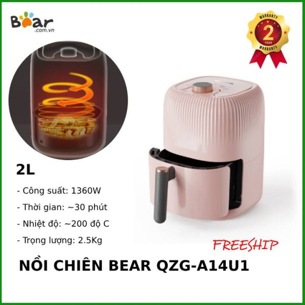 Nồi chiên không dầu 2L Bear QZG-A14U1 nút vặn cơ dễ sử dụng phù hợp người độc thân ở một mình