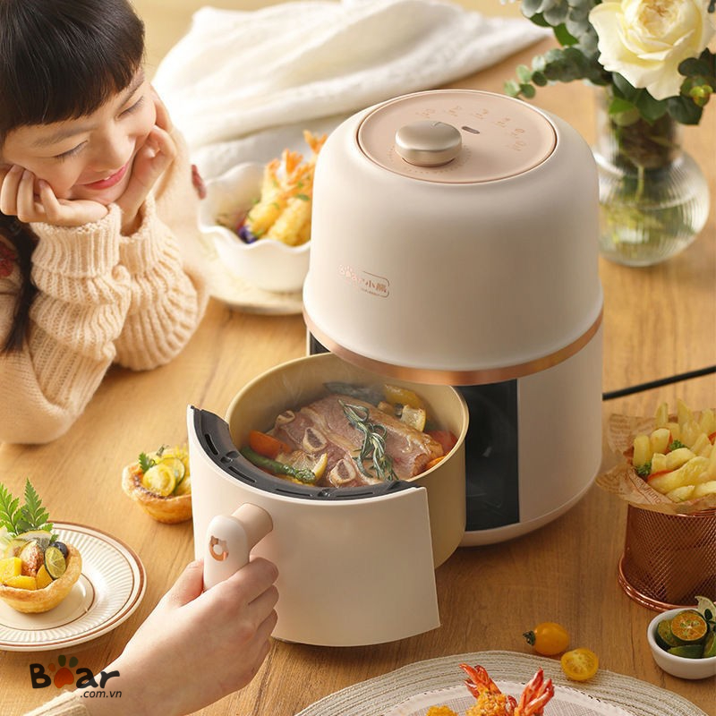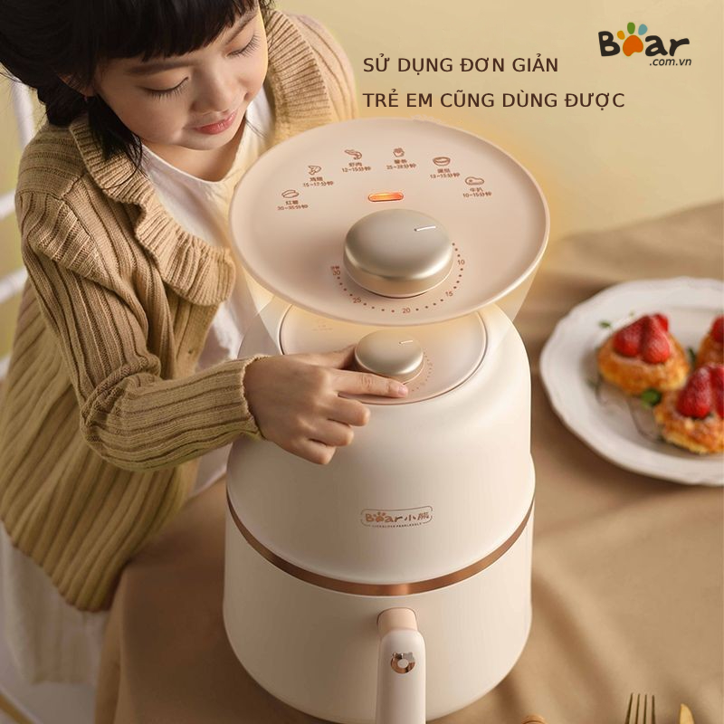 Nồi chiên không khí dung tích 2L Bear QZG-E09F5 nhỏ gọn vừa đủ ăn dễ sử dụng dễ dàng hẹn giờ tới 30 phút giỏ có thể tháo rời chế độ an toàn cao khi giỏ rút ra điện ngắt tức khắc