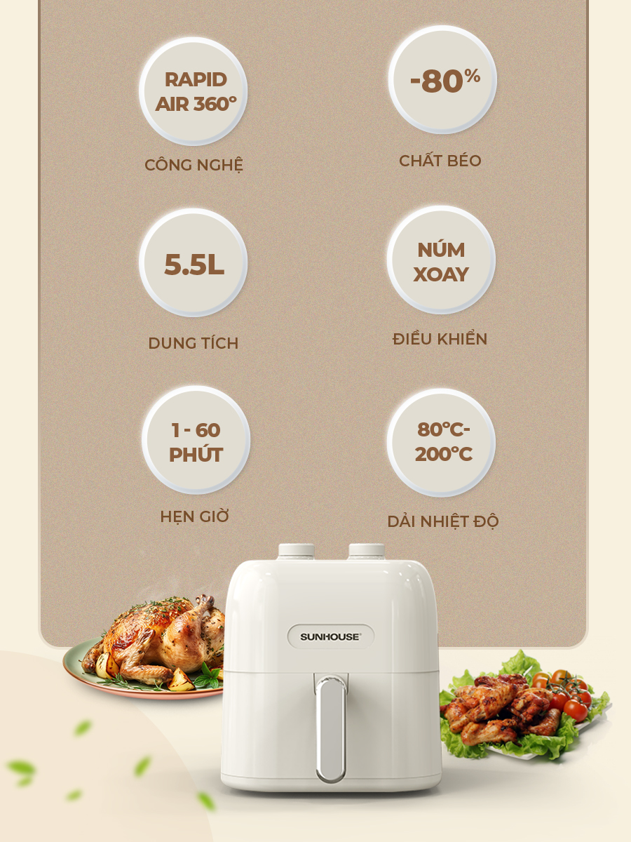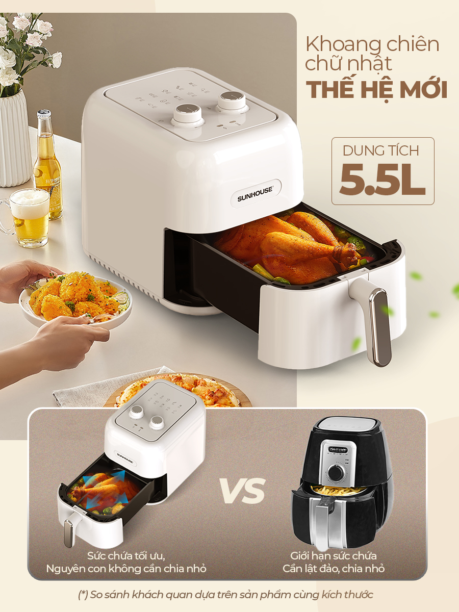 NỒI CHIÊN KHÔNG DẦU 5.5L SUNHOUSE SHD4022
