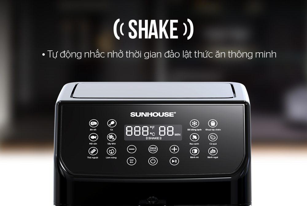Nhỏ gọn, tiện dụng hơn hẳn so với lò nướng, Nồi chiên không dầu 6L SUNHOUSE SHD4087 giúp bạn chế biến đa dạng món ngon mà không cần tốn sức. Với 12 chế độ nấu được cài đặt sẵn cùng bảng điều khiển cảm ứng nhạy bén, đặc biệt tính năng thông minh Tự động nhắc thời gian đảo lật thức ăn thông minh, ngay cả các chị em không rành nấu nướng cũng có thể chiêu đãi bản thân và gia đình thật nhiều món ngon chuẩn nhà hàng.