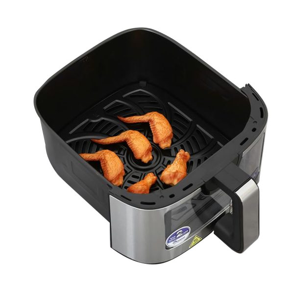 Nồi chiên không dầu BlueStone AFB-5886 sở hữu dung tích lớn 9 lít, có thể nướng nguyên con gà khoảng 1.5 kg hoặc chiên cùng lúc 9 chiếc cánh gà, đáp ứng hoàn hảo nhu cầu chế biến món ăn cho gia đình đông thành viên hay các buổi tiệc nhỏ tại nhà.