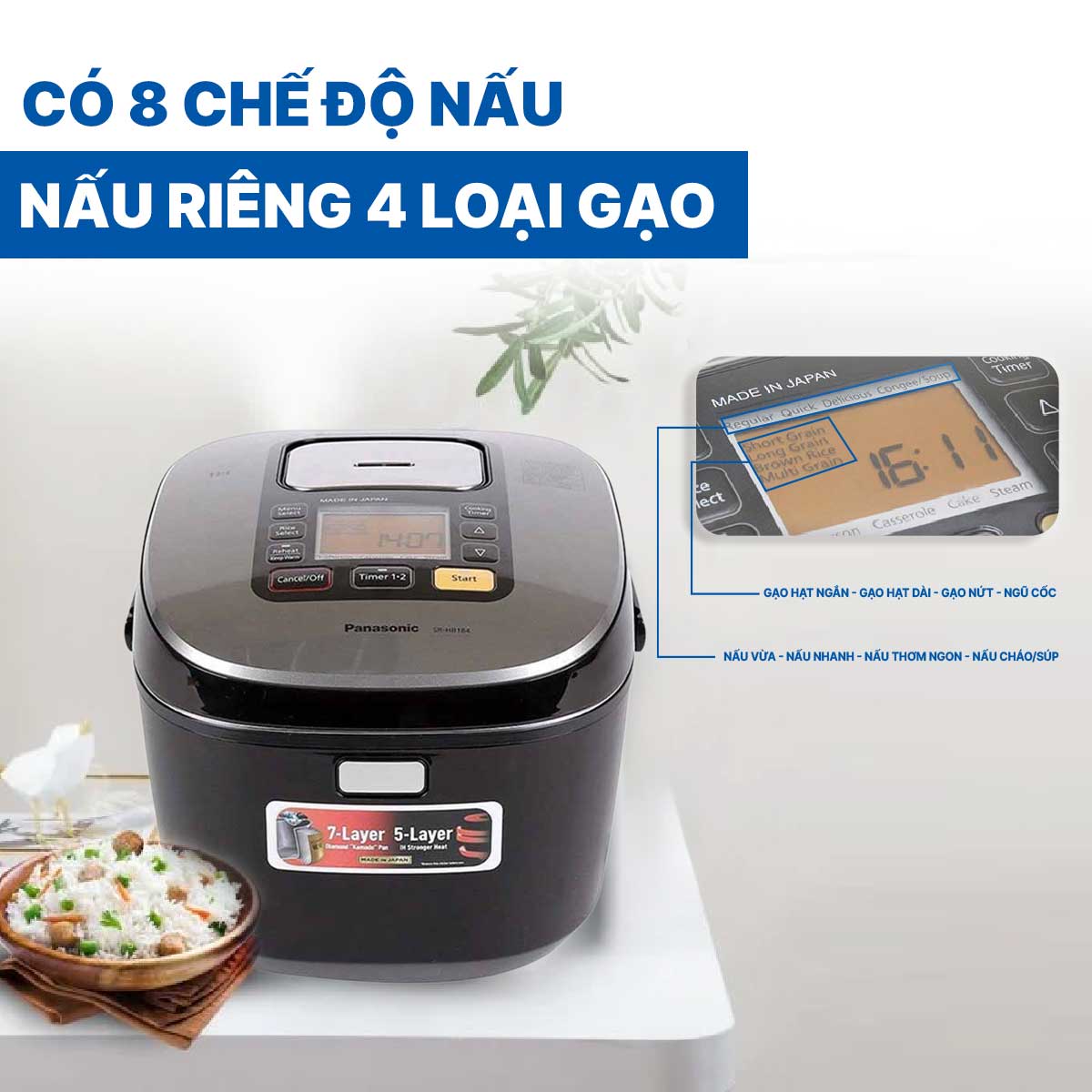 • Công nghệ nấu cơm: cao tần áp suất