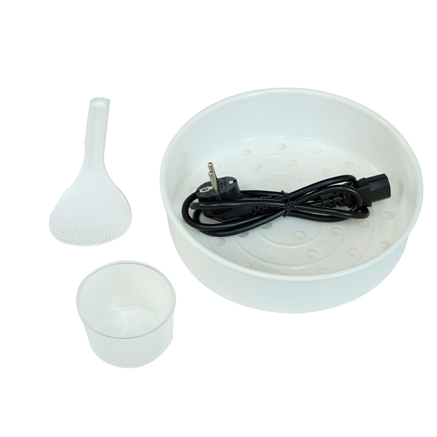 • Phụ kiện: Cốc đong, muôi xơi, xửng hấp