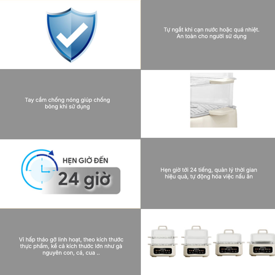 Đặc biệt, khay hấp trong suốt giúp bạn dễ dàng quan sát món ăn trong quá trình nấu, tránh mở nắp gây thất thoát nhiệt, giữ trọn độ ngon.