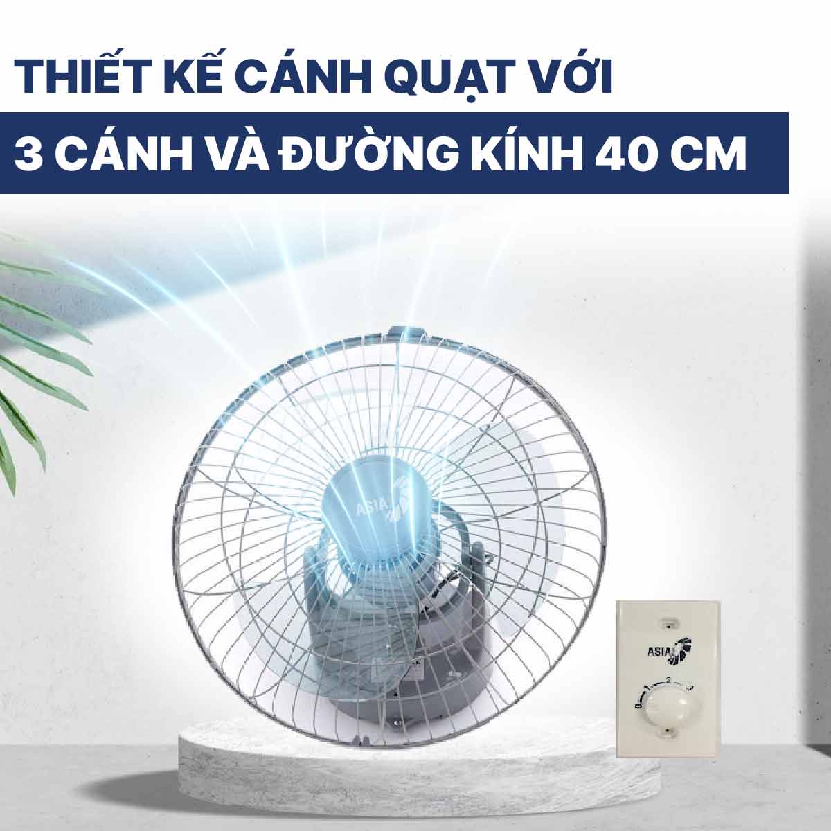 • Hiệu suất làm mát cao: Số lượng 3 cánh quạt kết hợp với đường kính 40cm mang lại khả năng tạo ra dòng gió mạnh mẽ và lan tỏa hiệu quả khắp không gian.