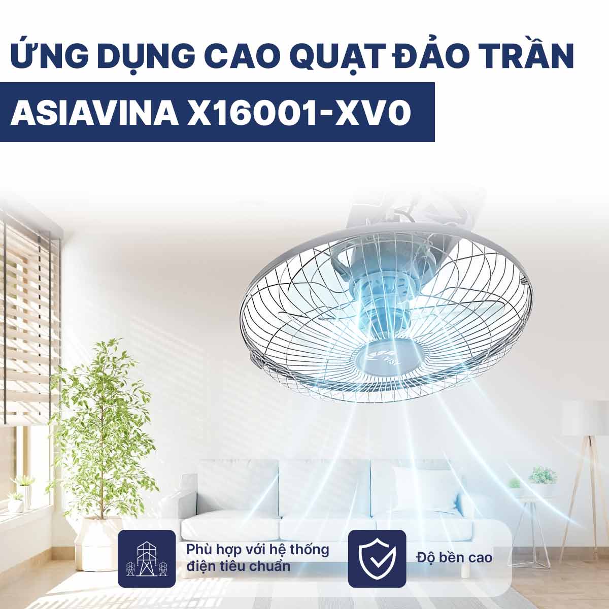 Công suất 55W của quạt đảo trần ASIAVINA X16001-XV0 cho thấy sản phẩm được thiết kế để đạt hiệu suất làm mát tối ưu mà vẫn tiết kiệm điện năng.