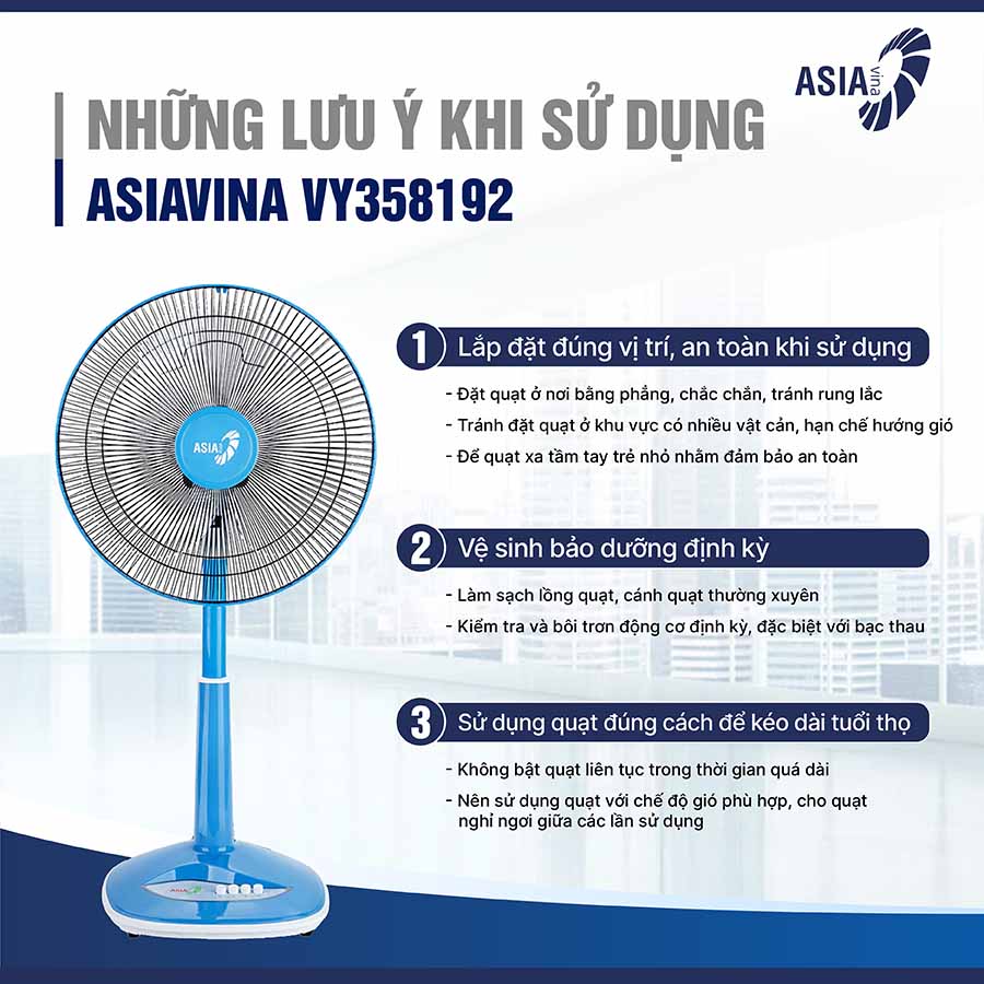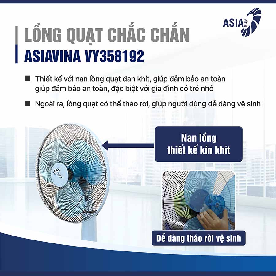 Quạt lửng Asia VY358192 không chỉ nổi bật với hiệu suất làm mát mạnh mẽ, tiết kiệm điện, mà còn đảm bảo an toàn tuyệt đối và độ bền cao. Với thiết kế thanh lịch, tính năng linh hoạt và hệ thống bảo vệ tiên tiến, đây chắc chắn là lựa chọn lý tưởng để mang đến không gian mát mẻ, thoải mái cho gia đình bạn.