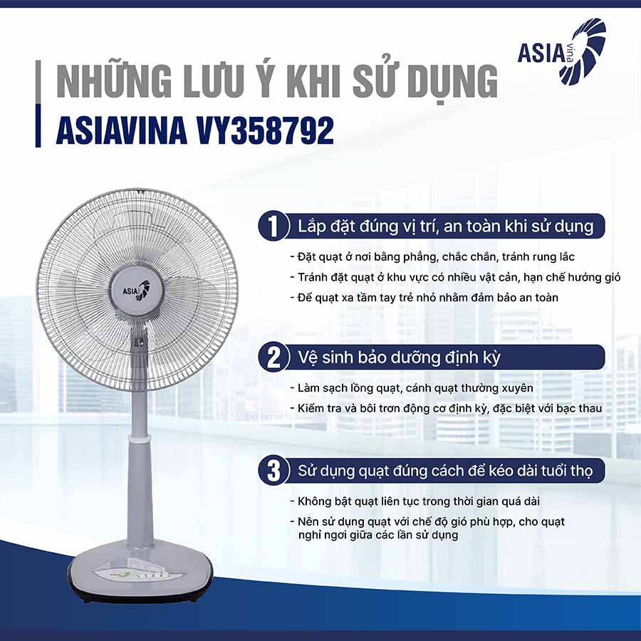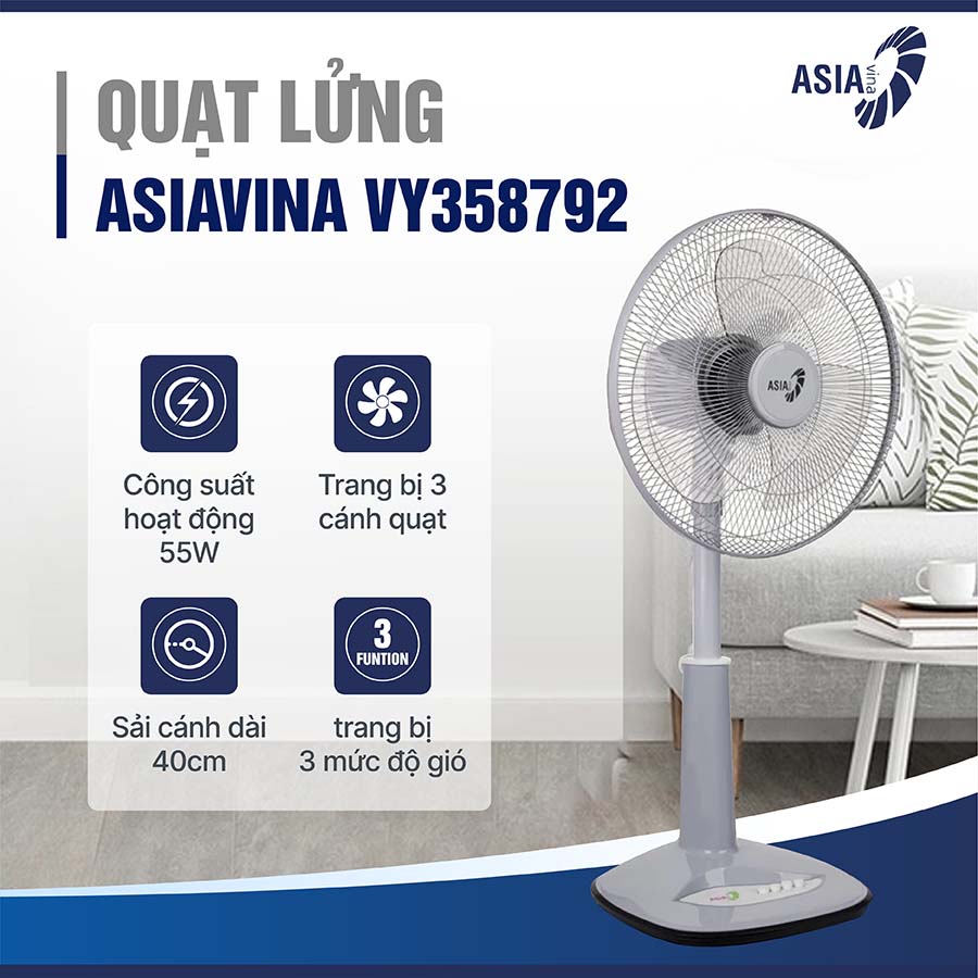 Quạt lửng Asia VY358792 không chỉ nổi bật với hiệu suất làm mát mạnh mẽ, tiết kiệm điện, mà còn đảm bảo an toàn tuyệt đối và độ bền cao. Với thiết kế thanh lịch, tính năng linh hoạt và hệ thống bảo vệ tiên tiến, đây chắc chắn là lựa chọn lý tưởng để mang đến không gian mát mẻ, thoải mái cho gia đình bạn.