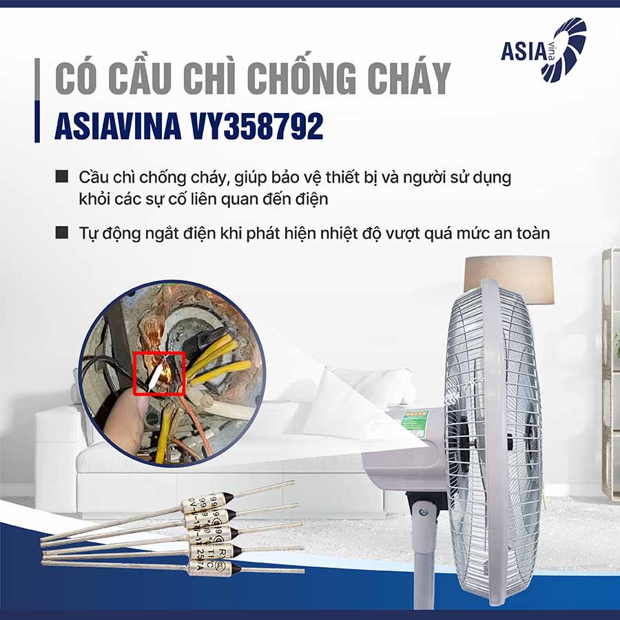 VY358792 được tích hợp hệ thống cầu chì bảo vệ motor. Khi dòng điện quá cao hoặc xảy ra sự cố bất thường về điện, hệ thống này sẽ tự động ngắt để ngăn chặn tình trạng quá tải, chống cháy nổ, bảo vệ an toàn cho người dùng và thiết bị điện trong gia đình. Điều này giúp bạn hoàn toàn yên tâm khi sử dụng, ngay cả trong những khu vực có điện áp không ổn định.
