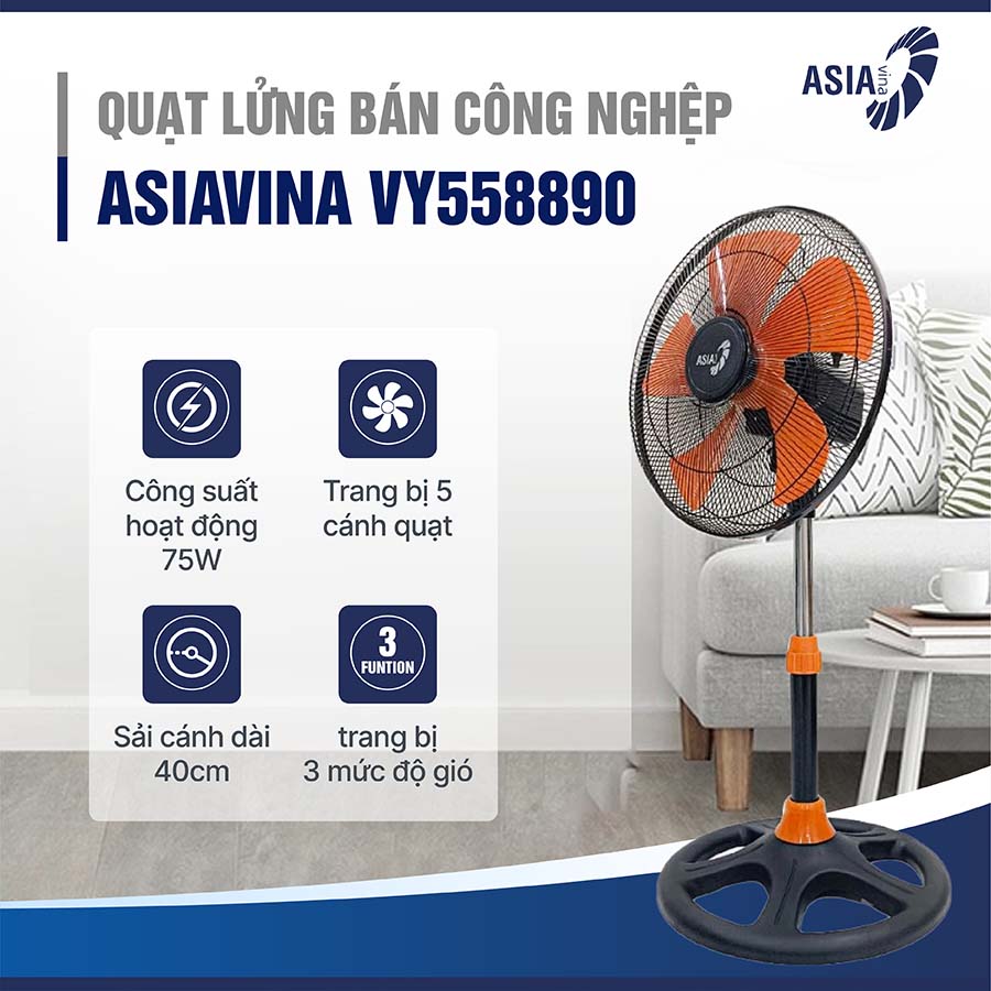Quạt lửng bán công nghiệp Asiavina VY558890 làm mát mạnh mẽ, vận hành bền bỉ