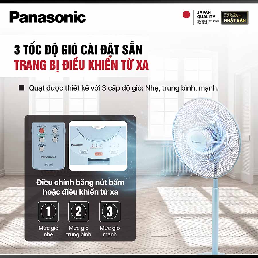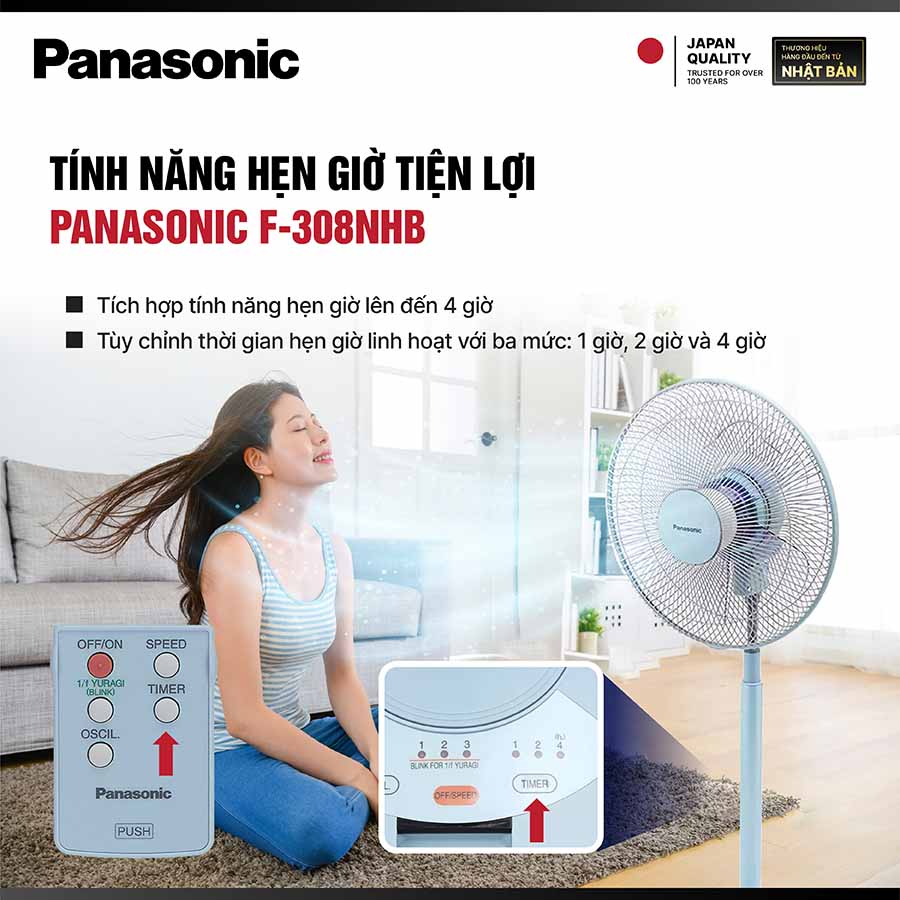 Hôm nay, chúng tôi đặc biệt giới thiệu đến các bạn dòng quạt lửng Panasonic có điều khiển từ xa F-308NHB màu xanh đến từ thương hiệu Panasonic – với lịch sử sản xuất lên tới 100 năm, vô cùng quen thuộc với gia đình Việt, chắc chắn sẽ làm các bạn vô cùng hài lòng.