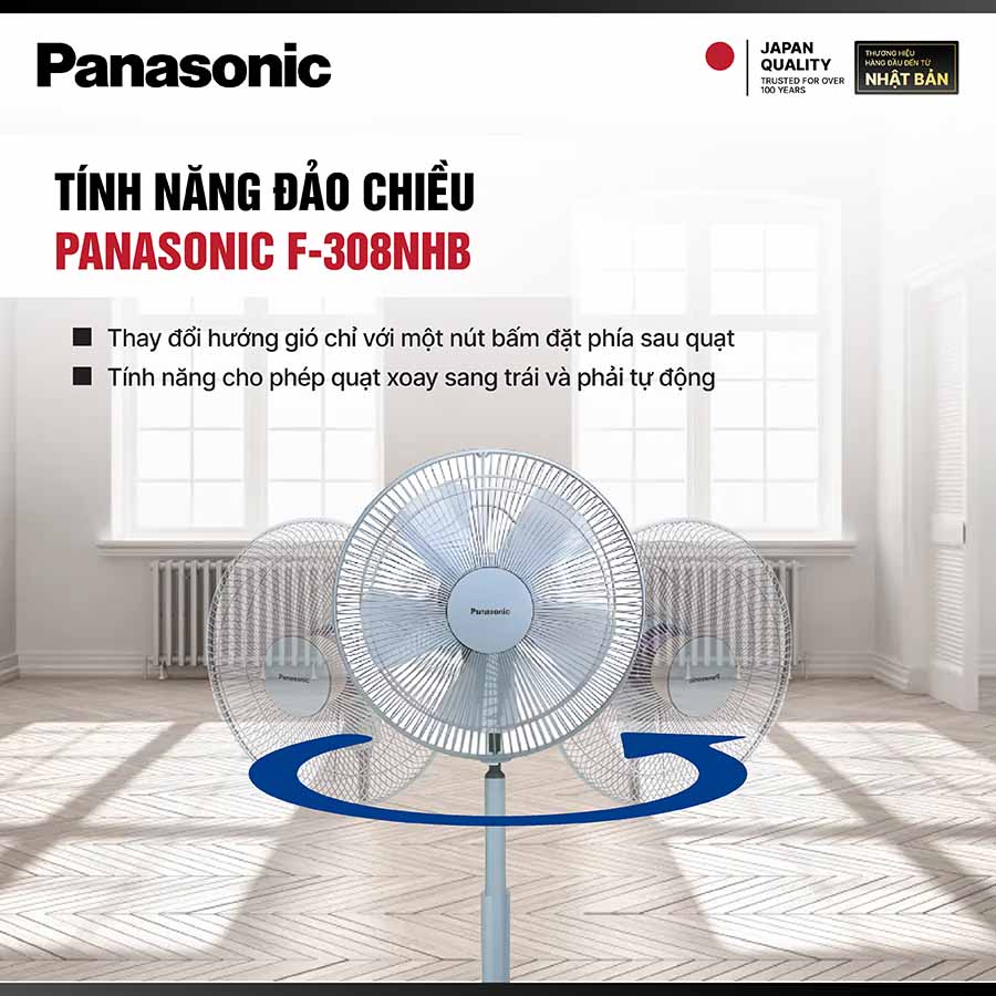 Quạt lửng Panasonic F-308NHB có đảo chiều linh hoạt, làm mát diện rộng không?