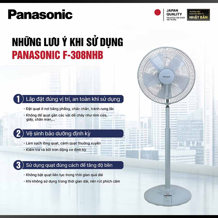 Phải khẳng định rằng tất cả các sản phẩm của Panasonic đều được người tiêu dùng đánh giá cao về đồ an toàn cho người sử dụng. Trong đó, dòng quạt lửng F-308NHB cũng không ngoại lệ.