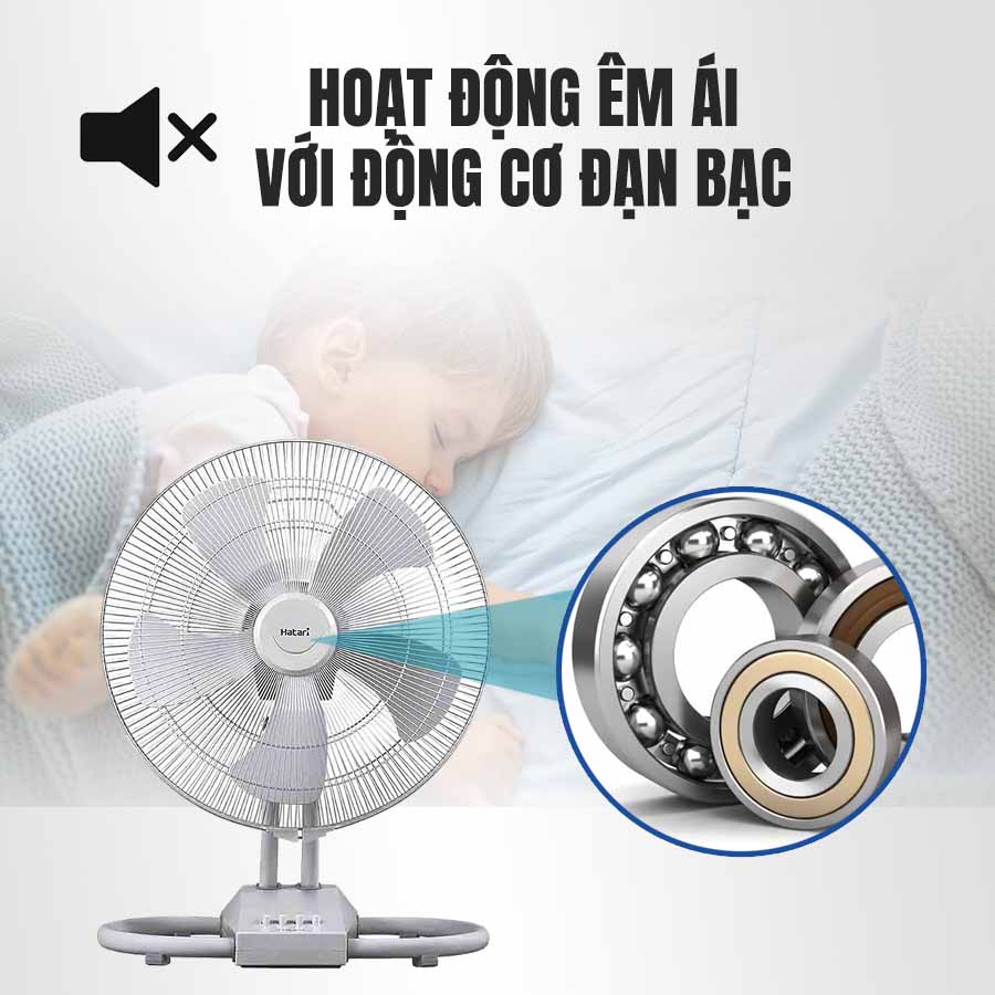 Quạt sàn công nghiệp Hatari IT18M2 đã giải quyết triệt để vấn đề tiếng ồn bằng việc trang bị động cơ bạc đạn tiên tiến. Điểm đặc biệt của động cơ này nằm ở khả năng vận hành cực kỳ êm ái, gần như không phát ra tiếng ồn trong quá trình hoạt động. Điều này mang đến một không gian yên tĩnh và thoải mái cho bạn và gia đình, dù là khi làm việc tập trung, thư giãn đọc sách hay tận hưởng giấc ngủ sâu.