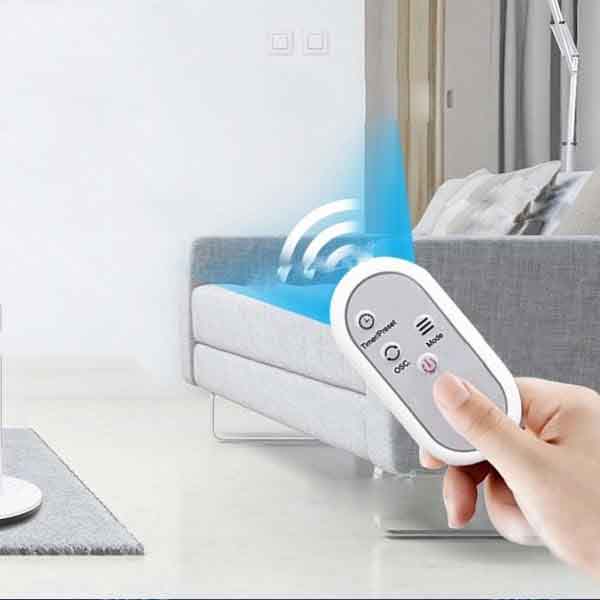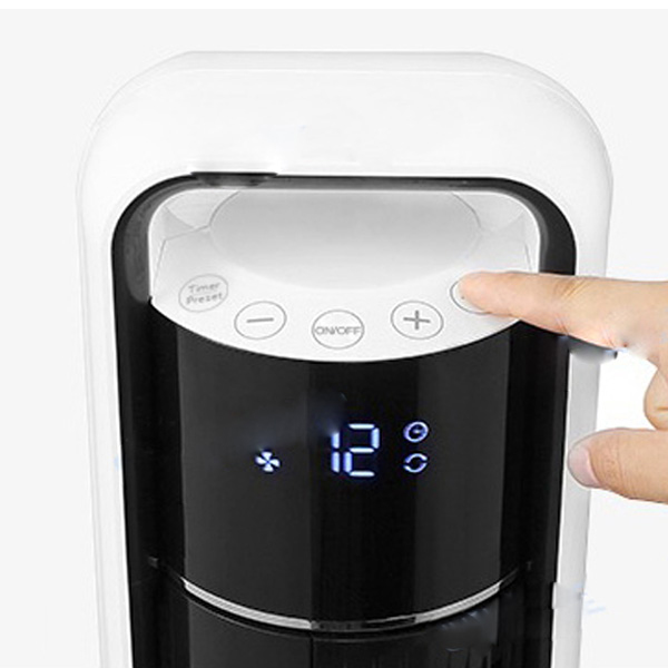 Trên bề mặt quạt có phần mặt điều khiển làm bằng cảm ứng rất dễ sử dụng. Hệ thống cảm ứng này có thể khóa lại để tránh trẻ nhỏ tò mò, chạm vào sử dụng. Thay vào đó, có thể sử dụng điều khiển từ xa đến 6m rất tiện lợi mà không mất công đi lại, điều chỉnh.