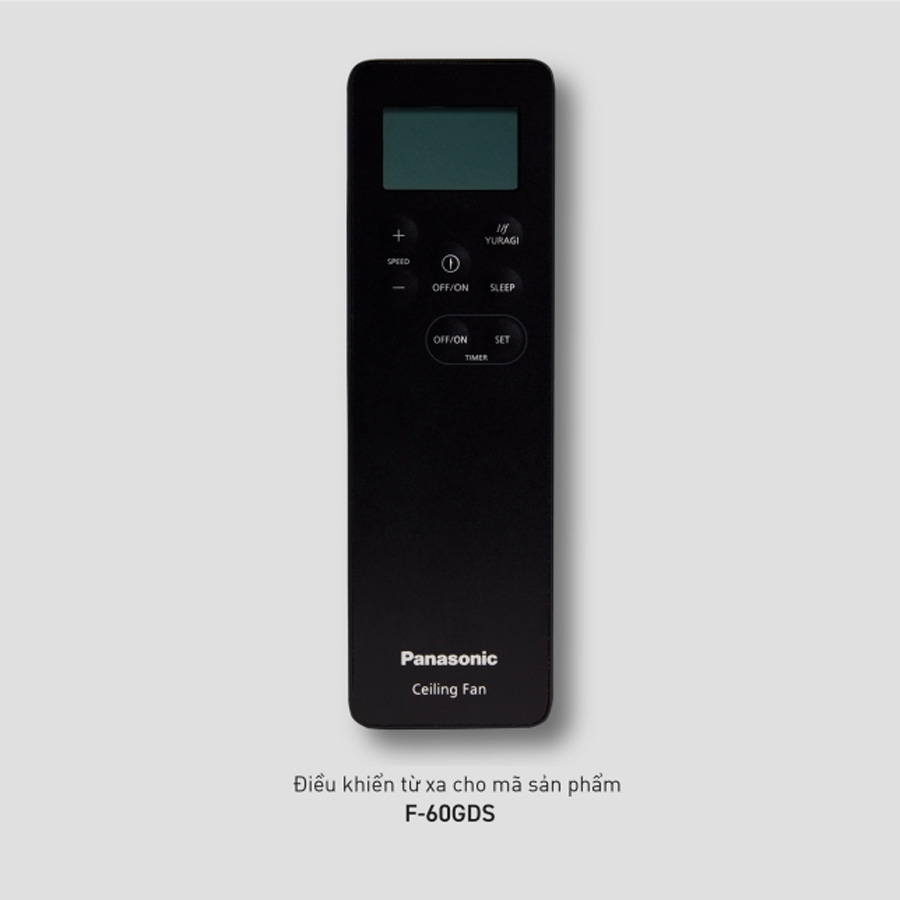 Quạt trần Panasonic F-60GDS-B được trang bị điều khiển từ xa với màn hình LCD, giúp người dùng dễ dàng thao tác mà không cần phải đến gần quạt. Chỉ với vài thao tác đơn giản trên điều khiển, bạn có thể tùy chỉnh tốc độ gió, chế độ vận hành và hẹn giờ một cách nhanh chóng, tiện lợi.