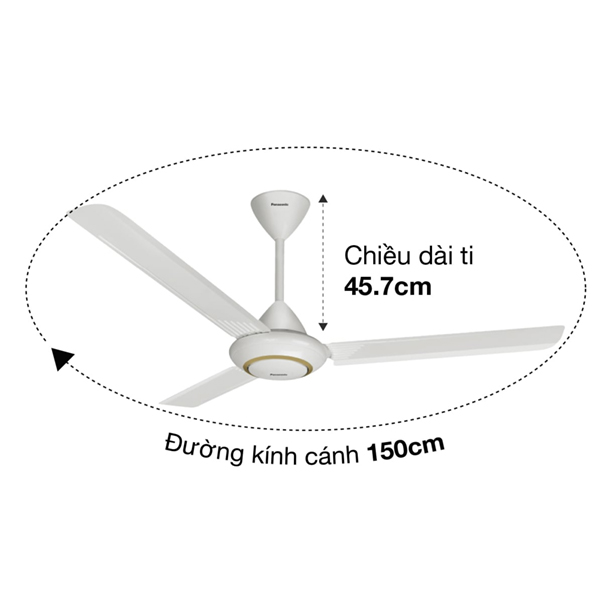 Quạt trần Panasonic F-60MZ2 được thiết kế với màu trắng viền vàng thể hiện sự quý phái, sang trọng, phù hợp với những căn nhà hiện đại ngày nay. Với màu chủ đạo là màu trắng bạn có thể dễ dàng đặt nó ở vị trí trung tâm dù gam màu của gia đình có là màu gì đi nữa vẫn không bị đối lập, gây khó chịu cho tầm nhìn. Lối thiết kế 3 cánh quạt đối xứng nhau, giúp luồng gió được phân tán vào mọi ngóc ngách của căn phòng. Có thể tùy chỉnh mức gió tùy theo nhiệt độ phòng hay ý muốn của bản thân với 5 cấp độ chỉnh mức gió. Cảm nhận được làn gió mát lạnh tự nhiên xua tan cái nóng oi bức dù có phải là mùa hè gay gắt hay không.