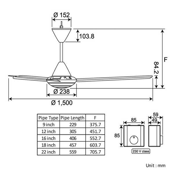 Quạt trần 3 cánh Panasonic F-60MZ2